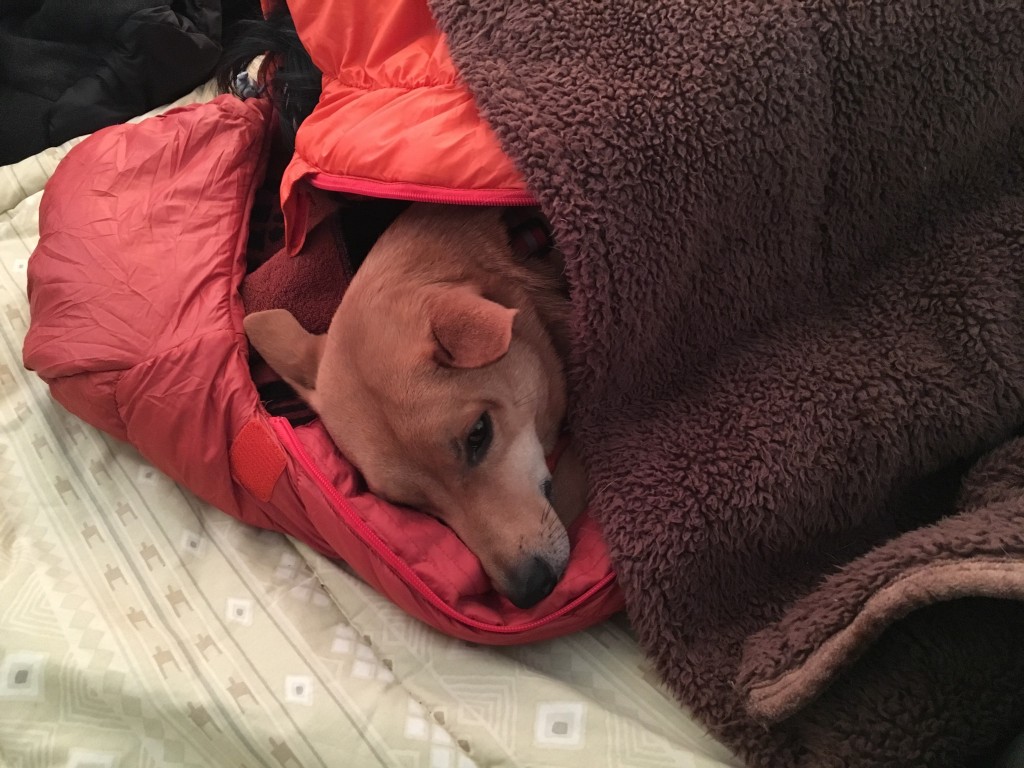 起きてからも妻のシュラフに潜り込んでいましたけど