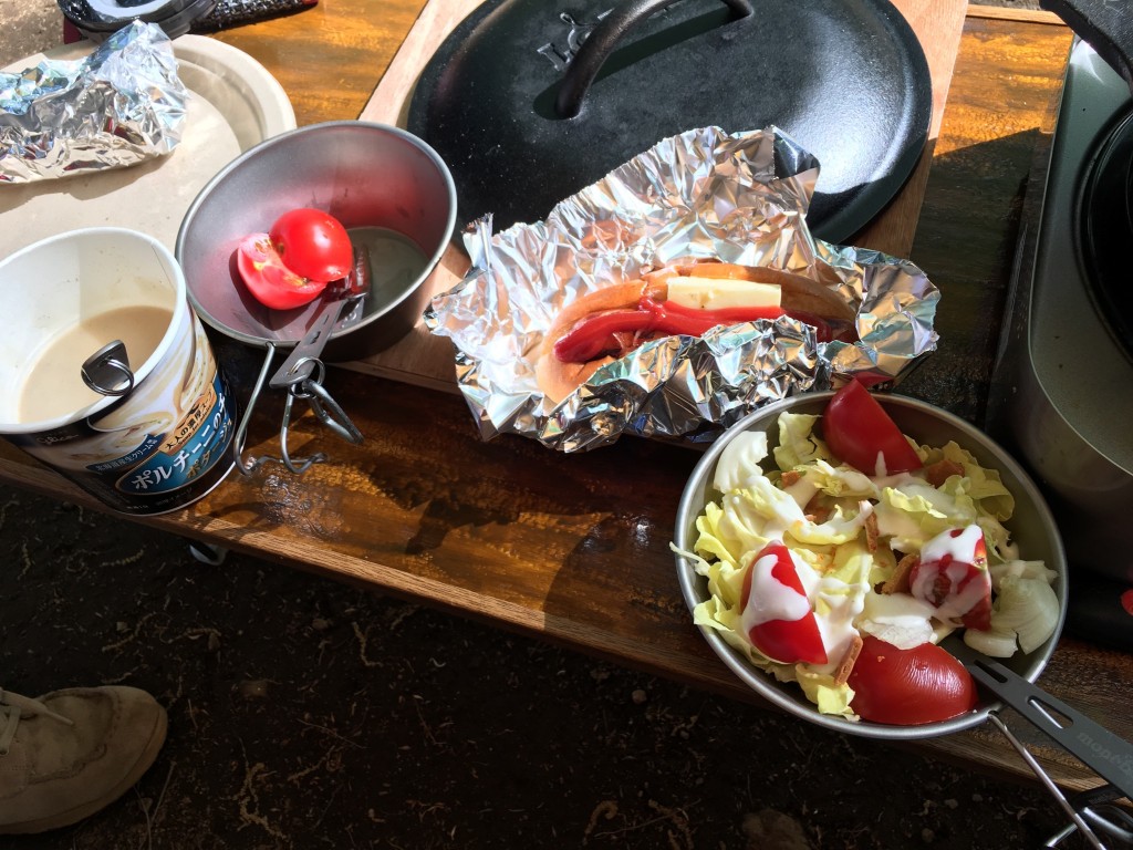 日が出ると温かいので外でご飯