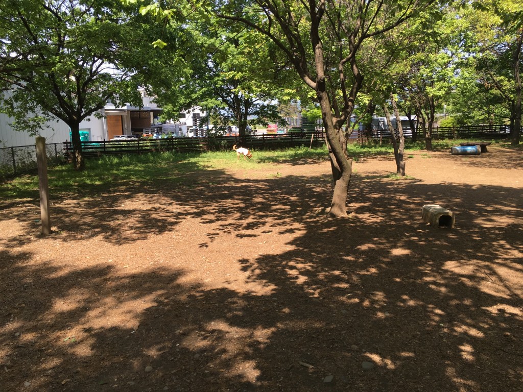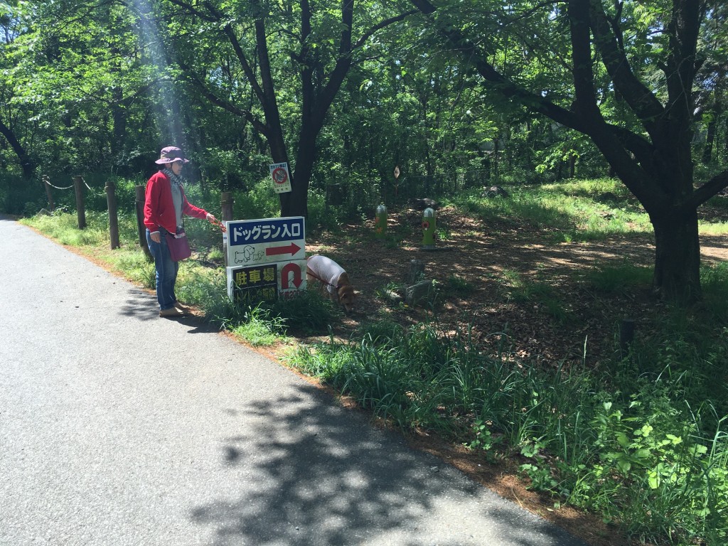 仕方なく工事も休みだったので前に止めさせてもらいドッグランへ