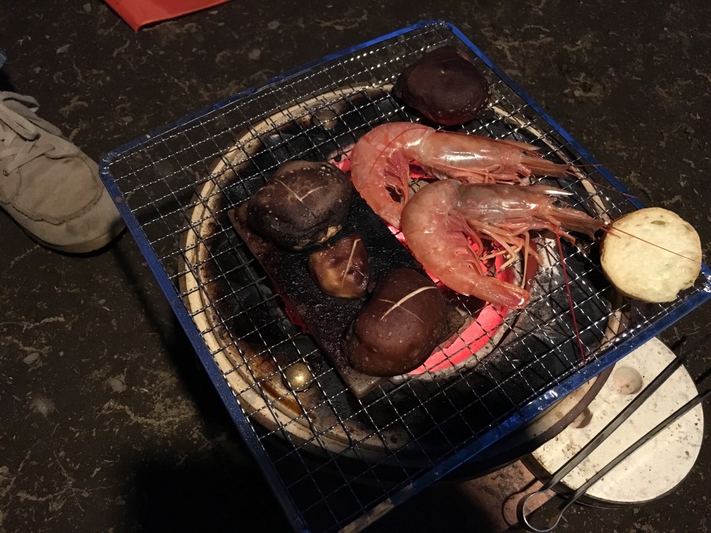 エビもいけます!網で焼き殻を剥いた後